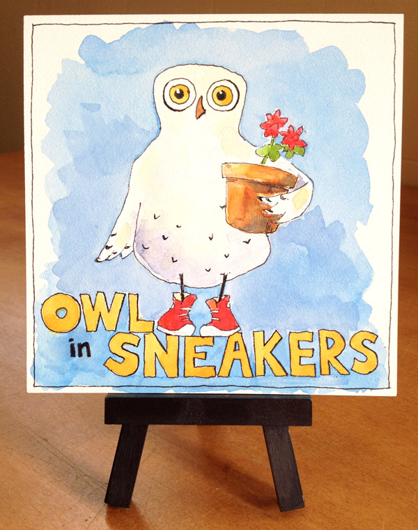I’ve been experimenting with developing this small, quirky character Owl in Sneakers. The basic features came to me late last summer, and I thought it might be fun to play around and see what he might become.