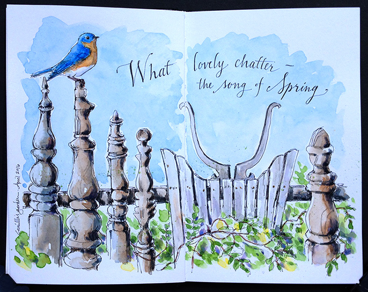 A sweet spring song from the bluebird on the fence. Very nice quick sketch. Thanks for sharing your sketch and story; I haven’t seen any B.Birds where I live.