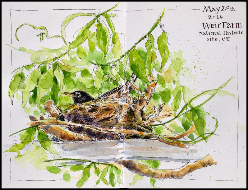 I know what you mean–I can’t keep up either! I love your robin’s nest. We have one (with three babies in it!) in a dying cherry tree in our backyard. It’s on my list to sketch, but I’m trying to keep my distance for the moment. I don’t want to frighten any of the babies into taking a leap out of the nest. I did get a few reference photos though.