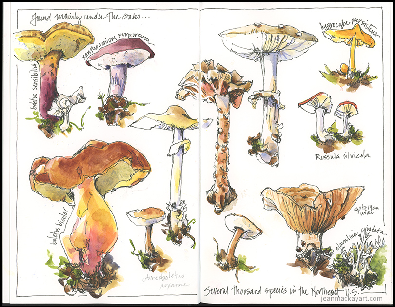 The Boletus bicolor is just so full of energy! Very expressive of the bolete feel. And I see one little coral mushroom – I love those – I hope you find more of them. Maybe not as good to draw, but fascinating to see. This whole page is just so expressive. It sings with your excitement. 🙂