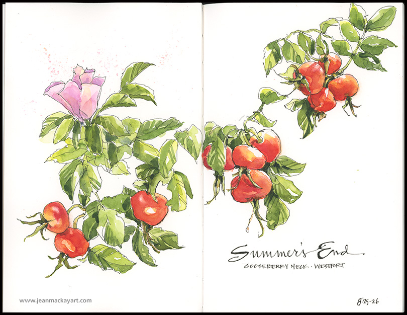 Tips and Techniques: When heading out to sketch, it’s helpful to think about what you can accomplish in the time you have. If you have 10 minutes, pick a 10-minute subject. This helps keep frustration in check, and you’ll avoid starting something you can’t finish or can’t capture sufficiently in the time you have. I’m fairly quick with drawing, but quite slow as a painter. I often choose subjects I can begin in the field and finish at later home, as was the case with the rose hips. Subjects like birds and trees take me longer to render well, so I don’t tackle them unless I have at least an hour. The more you work in the field the better you’ll become at picking subjects you can tackle well within the time you have.