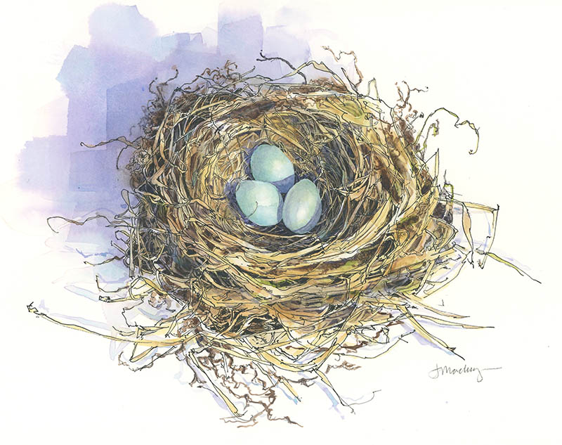 I love your birds nest – I can’t imagine where you begin to draw the complicated tangle of twigs that make up the nest… !
