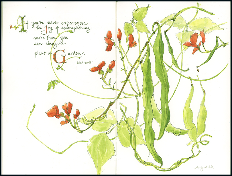 Lovely page. I’ve been looking at my beans and thought they would make a nice page. I have red ones and also some that are called Painted Lady, which are red and white. They are amazing ,especially this year as we have had a lot of rain. I always enjoy your tips and techniques.