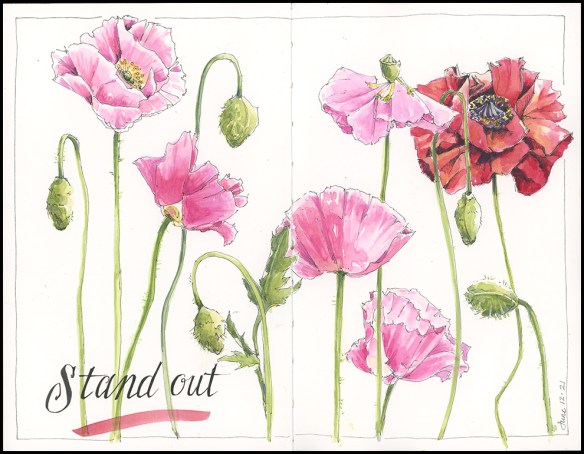 I just saw a red Poppy like the one in your painting while walking this morning and you have captured that flower perfectly. I DO love the pink ones and yours are gorgeous. No matter what I do next year, I MUST plant some poppies.