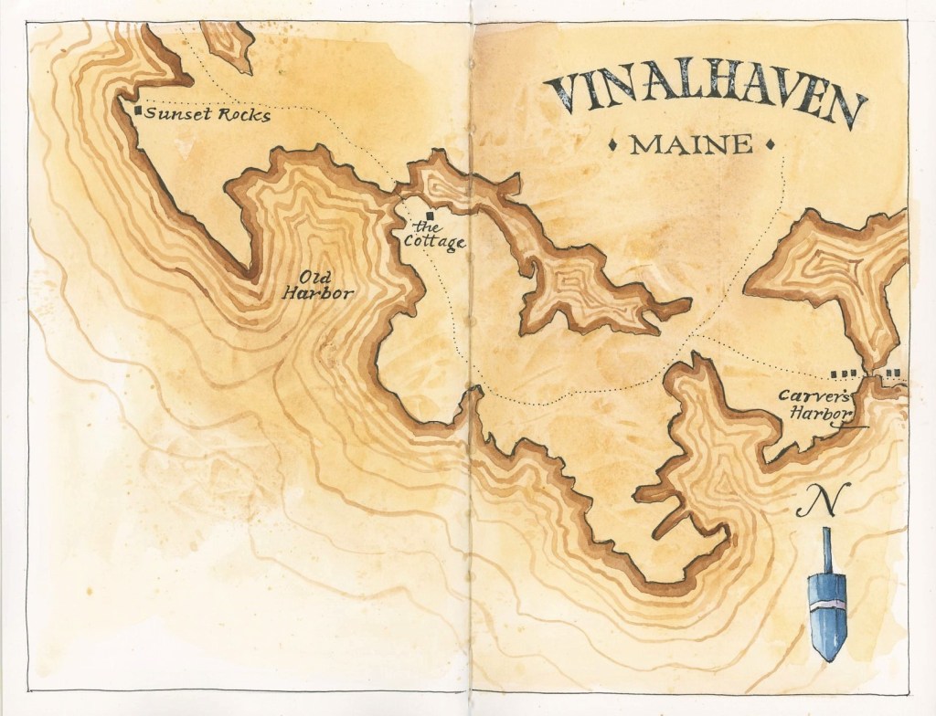 7. How wonderful that you’re able to travel to Maine for a vacation! (I’m jealous.) I love how you make a map in your sketchbook for a trip, and this one is quite beautiful.