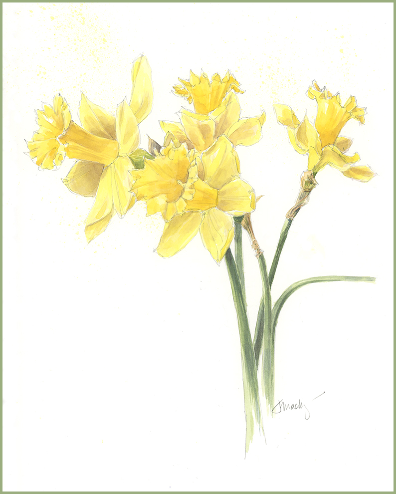 3. Jean ….. your daffodils are amazing and look effortless …. perfect! I imagined being in your garden with you, watching all that yellow dancing in the breeze. Thank you for sharing your progress and challenges in capturing just the right colors. I’ve been attempting convincing tulip drawings and watercolor paintings from my flower garden. Such subtle and pale pinks that only last a brief few days. And then it snowed.
