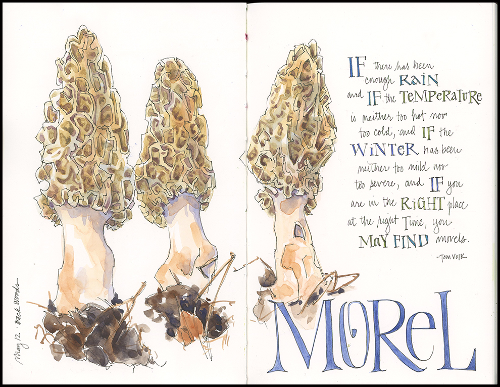 1. Fortunate you to be that person in the right place at the right time in the right conditions! I’ve never seen a morel, but they look fascinating. That must have been a fun sketch to do.