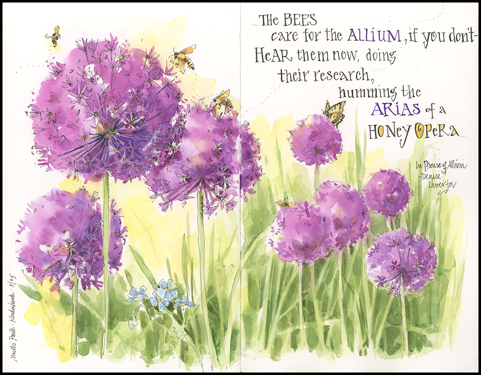 17. This is so lovely! I love how you painted the round shape & color of the Allium and drew in a few strokes for the hint of the petal shapes. Great technique! I loved the poem, it compliments your page so beautifully! Thank you for sharing and brightening my day!