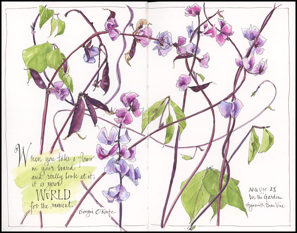 This quotation is so true. I love this sketch and your approach to capturing the complexities of a vine. And thanks for the reminder to grow hyacinth beans!