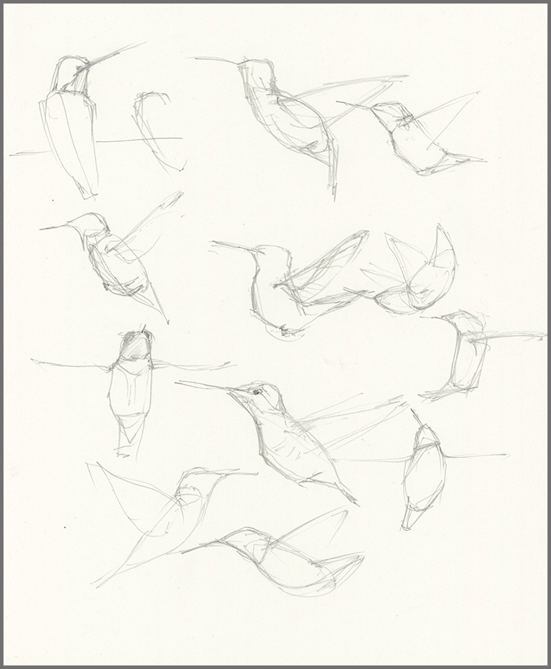 • I’m going to miss them when they head south! They truly are an incredible wonder! And though they are a wonder, they are also FIERCE! When we lived in San Diego, our back yard, teeny as it was, was filled with them -and they went after each other like fighter jets! Yikes! Your page has inspired me to try these gesture drawings (and from videos too, when they aren’t hanging around the garden!). Once my crocosmia, honeysuckle, and other flowers tucker out, they start venturing to other places. Thanks for sharing all your inspiring work!!! It’s truly exciting to have new ways of looking at life around us!