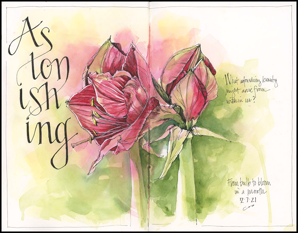 1. A beautiful painting and sentiment. I have always found amaryllis very challenging subject matter both for drawing/painting and photography. Your well chosen use of ink makes this lively.
