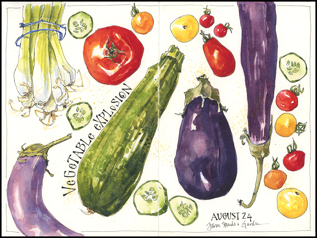 3. Awesome and delicious all at once! What a bounty. My personal favorites are the exquisite eggplant (such spectacular purples) and that perfect-for-bread zucchini (love your textures and shading). What combo did yiu use for the eggplant purples? Your tips and techniques are great (always). You have an amazing ability to make your advice sound exciting!