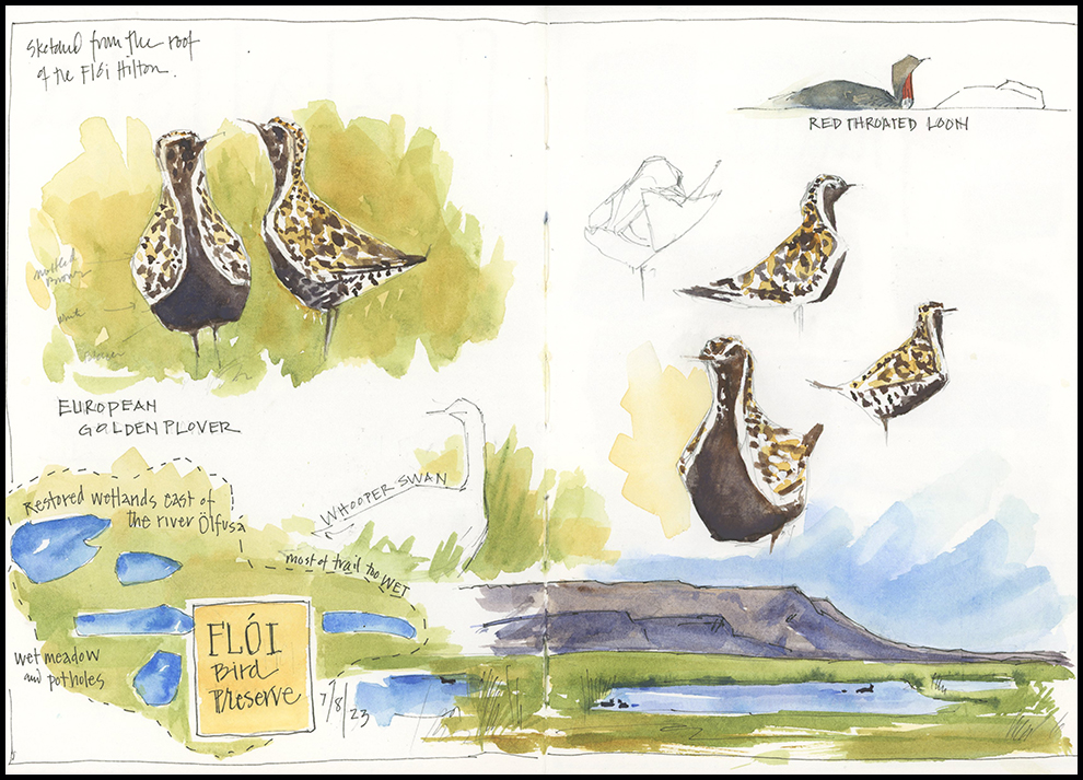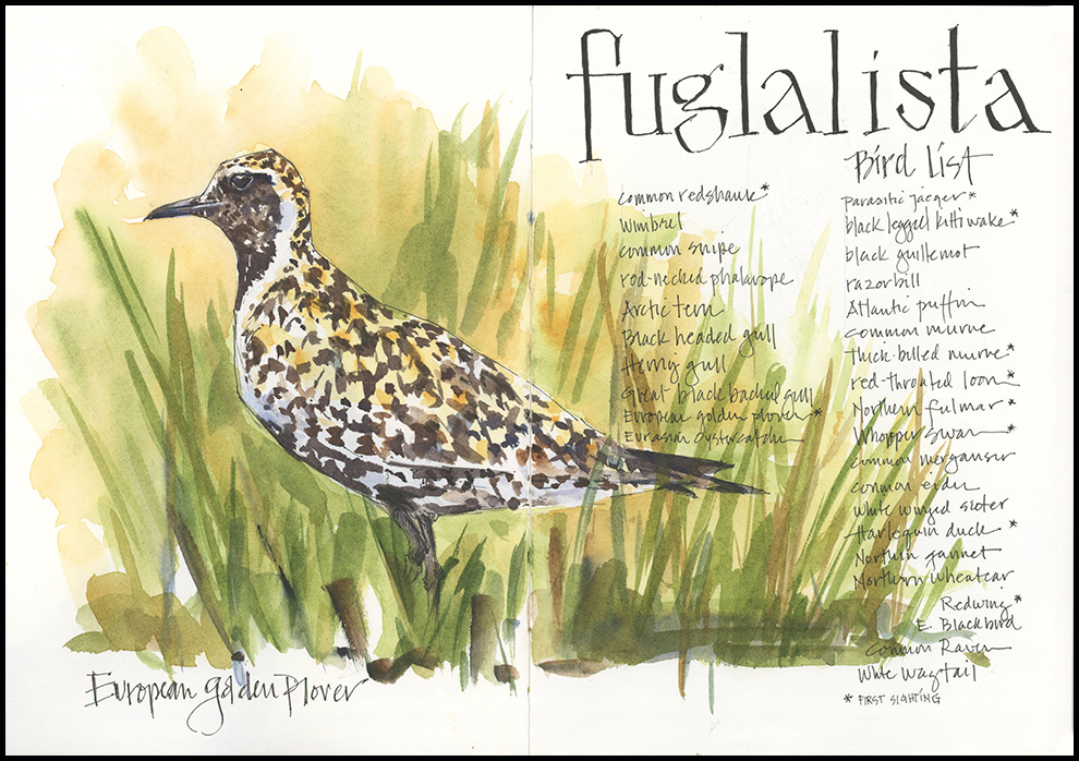 Wow, Jean, you captured an amazing variety of experiences, despite your limited time and the weather conditions. I love your wild flowers and Icelandic palette. What interesting birds they have there! I’m glad you were able to sketch a couple of them.
