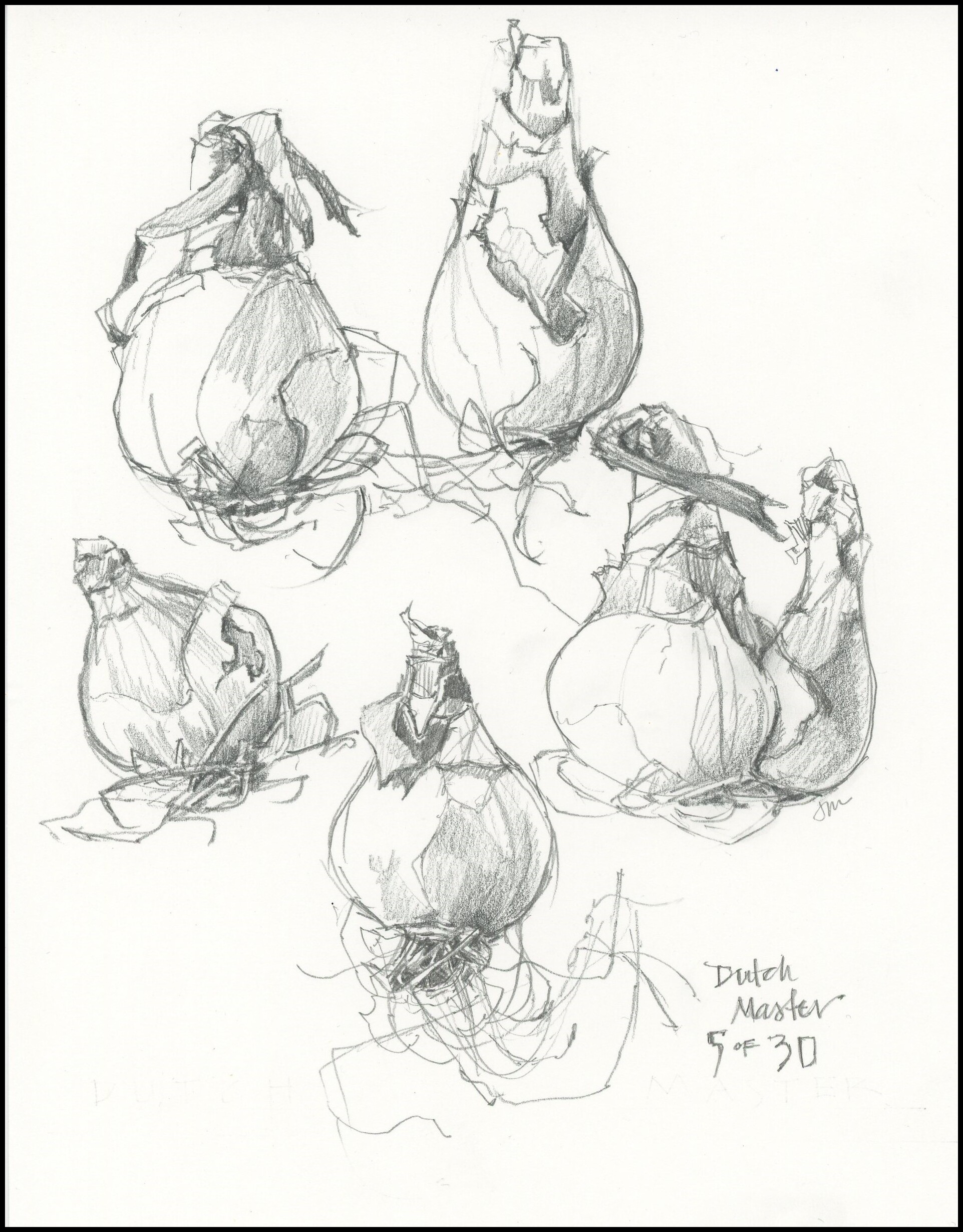Though I typically pick up a pen and watercolor when I have time for art, I just really felt like drawing this weekend. A soft pencil, smooth paper, and loose lines were just what I needed. I’ve got 30 bulbs to plant and though each one seems unique and interesting, these five will have to do. The spade is waiting.