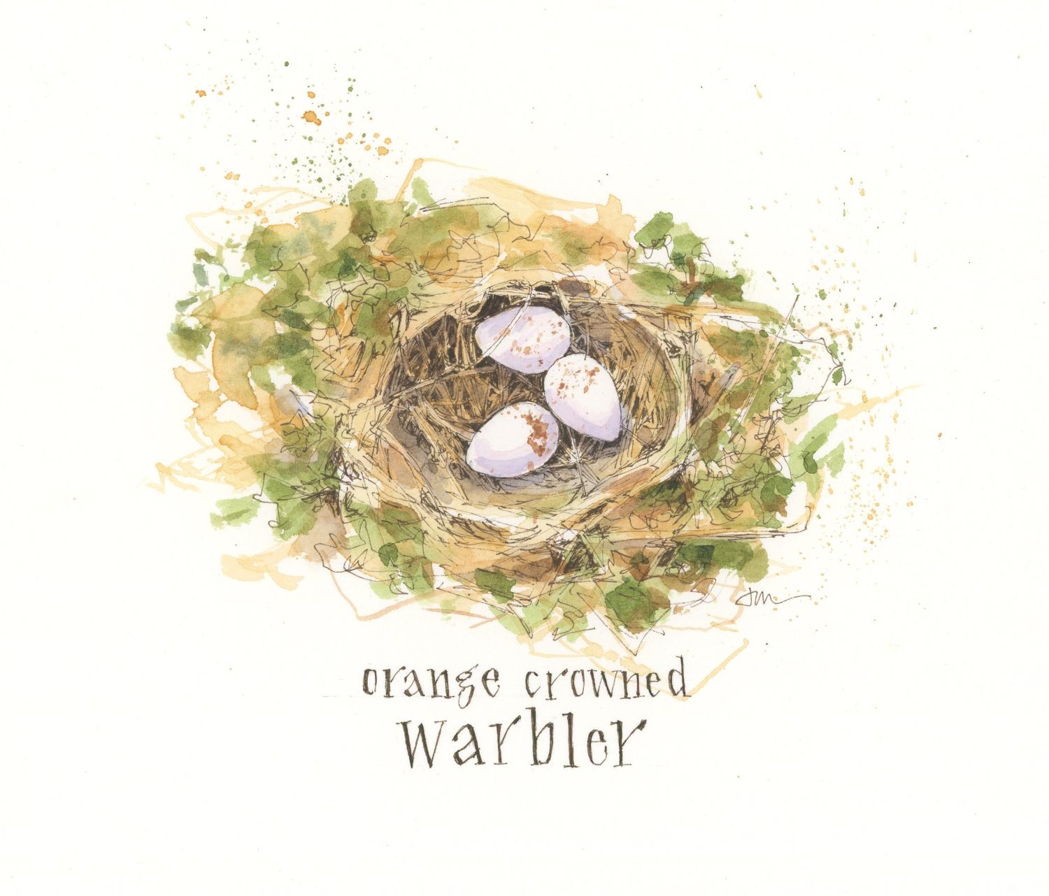I have several half-finished flower paintings in my sketchbook and allium in bloom that’s calling me from the garden. A Louisiana waterthrush is singing to beat the band by the streamside and a blue-winged warbler just showed up in the thicket by the woods, but there aren’t enough hours in the day to capture them—yet. I just wrapped up teaching The Art of the Bird, so nests have been very much front and center on my desk. At risk of seeming single-minded, I hope you’ll indulge me with another nest posting before I get going on the rest of spring.