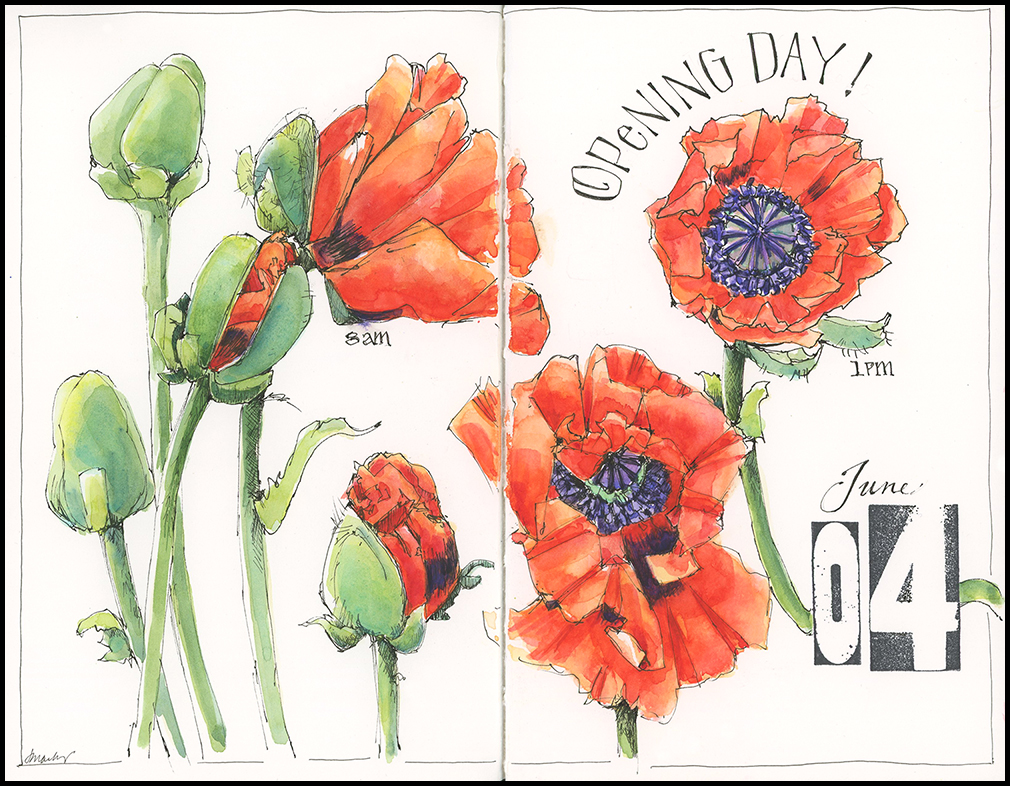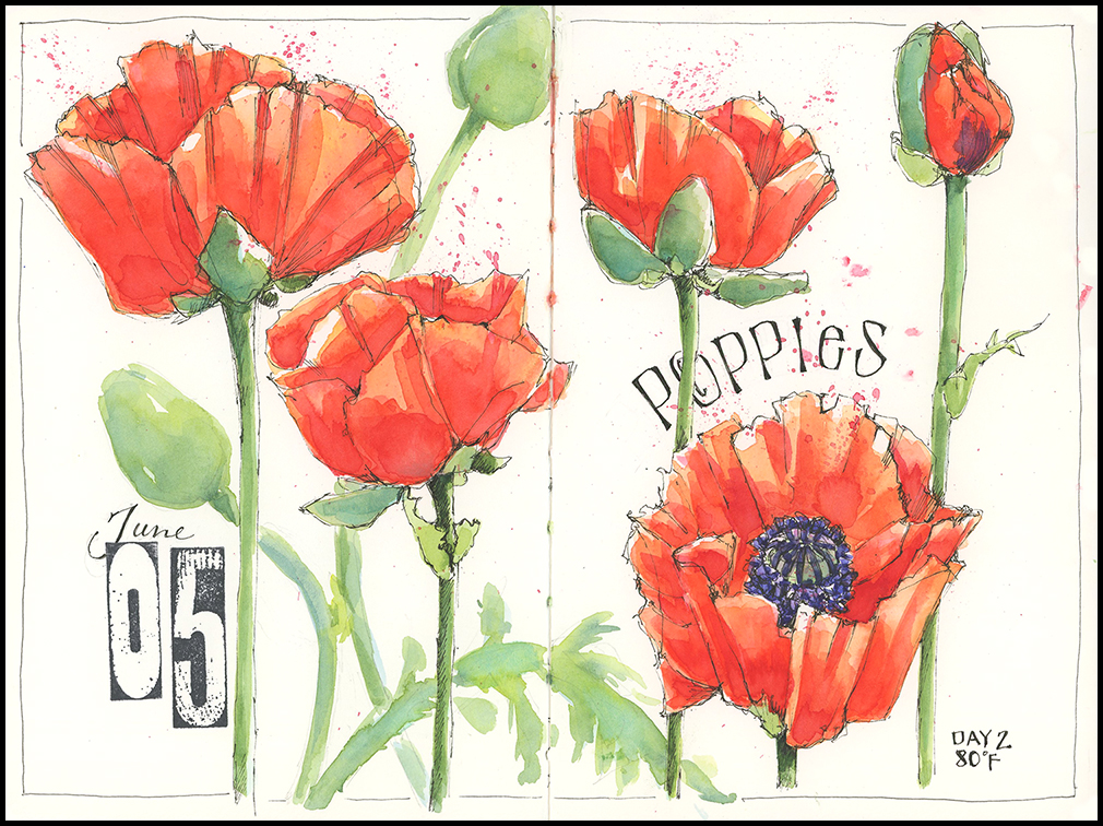 7. Agree with Dory above. Also like seeing what pigment colors you used and if you layered colors or let different pigments mingle to achieve your results. I’m mesmerized with the beautiful green foliage and the red in the poppies in this sketch. But, I find all of your tips and techniques helpful. Thanks for another beautiful sketch.