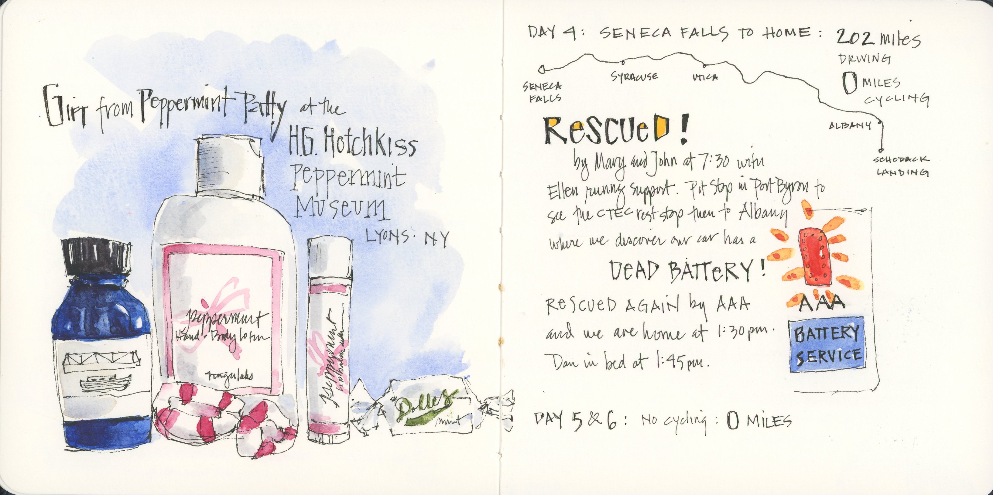Sounds like torture, but I am in awe that you could find the time to paint a few things to commemorate the journey in such a delightful way. When I am exhausted physically, my creativity is the first thing to go. I applaud you for enduring and capturing it in paint and pen.