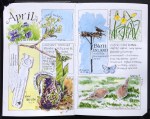 Tips & Techniques– The window for capturing spring ephemeral wildflowers is very short– miss it and you have to wait a year. This page records some of what I saw during hikes on April 29 and May 6. The second walk was challenging because it was raining. Determined, I discovered that I could hold an umbrella and sketchbook in one hand and my pen in the other. It’s a new technique for me — not bad, but I’m not quite sure I’d recommend it.