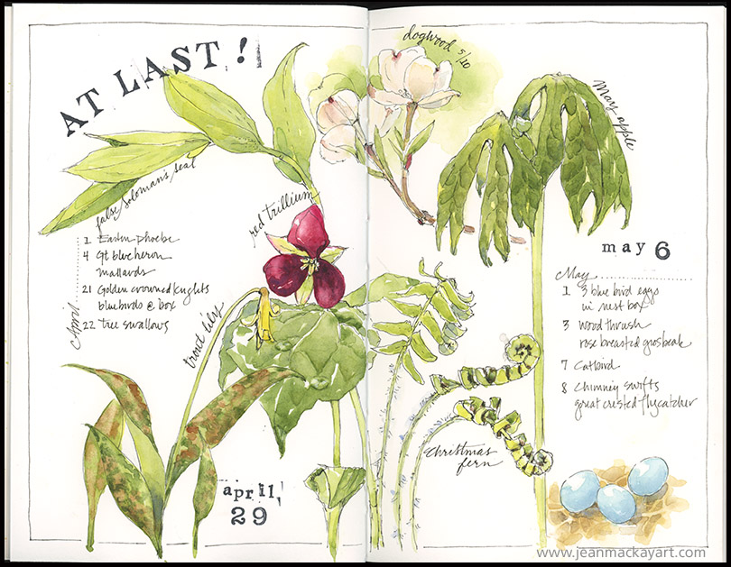 Each year we wait. We count the days, watch the weather, complain, wait longer. Our patience stretched thin by the cold and by gray skies that are slow to yield to clear blue. Then suddenly, at last, we are surrounded by green. I can never keep up; never find time enough sketch or paint it all. Still, this year as in the past, it is a pleasure to try.