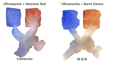 Get to know your paints! I haven’t used English Venetian Red before, and though it looks similar to Burnt Sienna, it is less transparent and mixes very differently. Look how it becomes more purple when mixed with Ultramarine Blue. Burnt Sienna creates beautiful browns and grays with Ultramarine, a mix I use all the time. The purple toned darks worked nicely for the oak leaves, creating a lively triad with the Yellow Ochre.