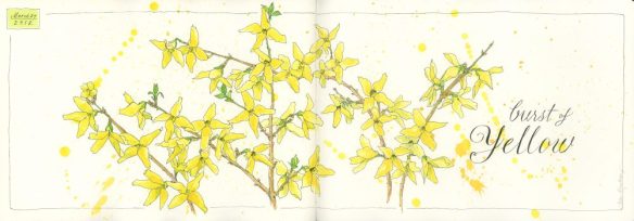 When the world has been brown for months, the first emergence of green is a wonderful thing. Skunk cabbage has been unfurling for several weeks now and is a most welcome sight along woodland streams and wetlands. In late winter, it sends up a maroon-striped spadix, which encloses its unpleasant smelling flower, and then in early spring it unrolls bright green leaves. I recently spent a pleasant afternoon sketching on the edge of a wooded steam, enjoying dappled sun and birdsong, and feeling grateful for this one beautiful color.