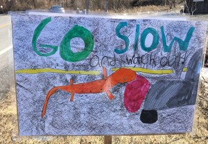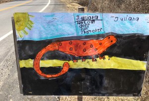 I used to round up friends and kids to go out for the annual migration. One year I paid my sons a dime for every salamander and frog they found and I had to pony up two bucks each at the end of an hour. My kids are grown now, but when they see a rainy forecast they still text me to ask, Is this the night? Some new kids put up these fantastic signs — I hope they were out there during this week’s rains, soaking up one of the greatest rituals of spring.
